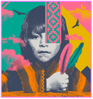 Descripción imagen de apoyo: Apoyan el comunicado una ilustración de un niño andino, en blanco y negro, y a su alrededor, muchos colores y dos cóndores volando sobre su cabeza.